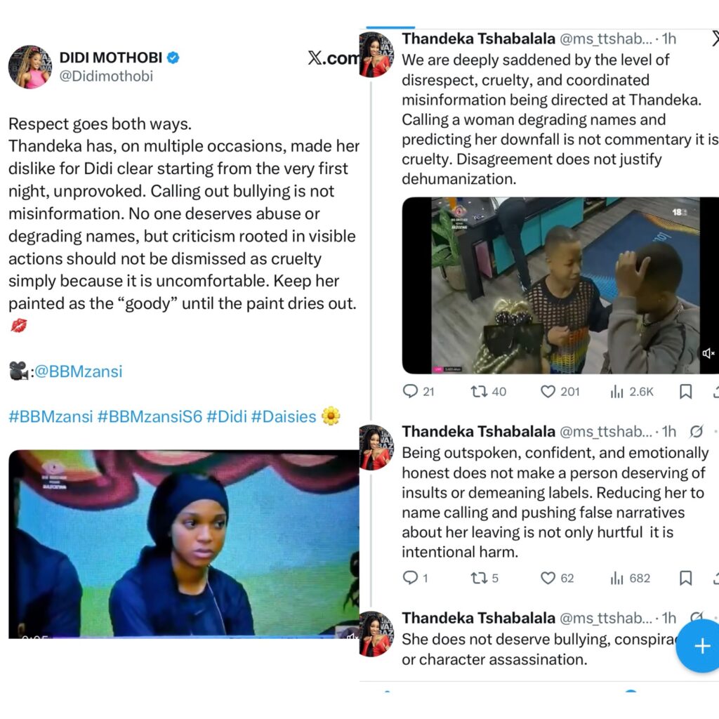 The ongoing BBMzansi Season 6 tension has officially spilled outside the house, as Didi’s management issued a public response to the recent statement released by Thandeka’s management.