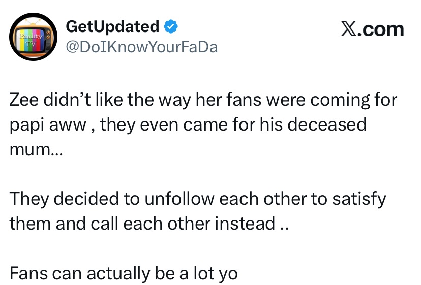 BBMzansi fans have taken to social media in droves after Zee and Young Papi revealed that they are still friends, sparking fresh debates and dragging old house narratives back into the spotlight.