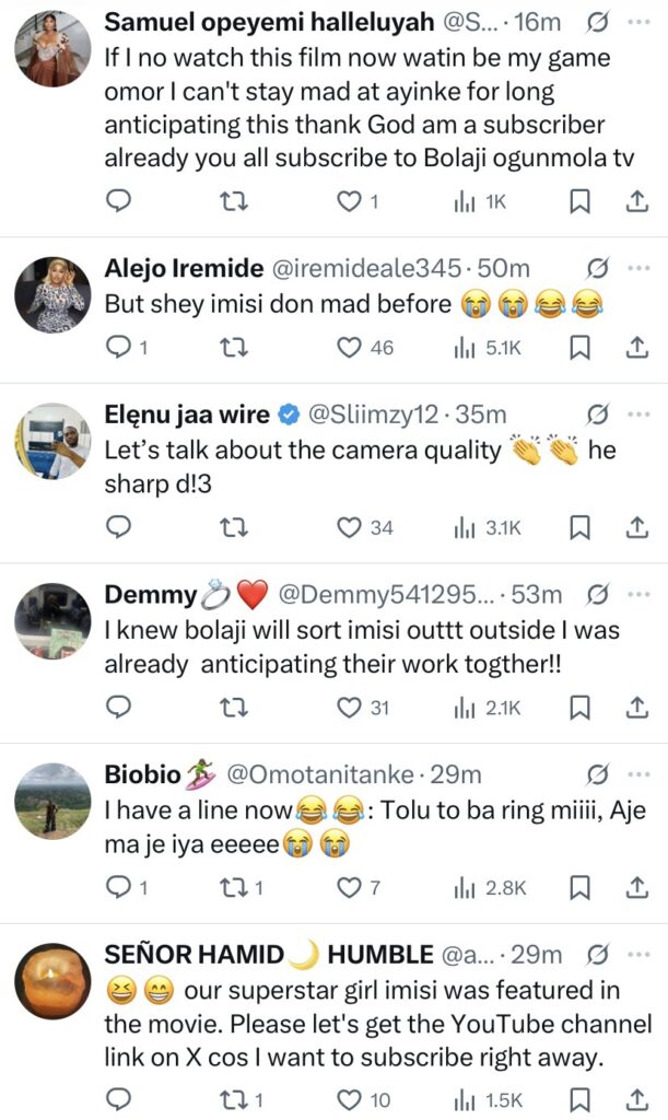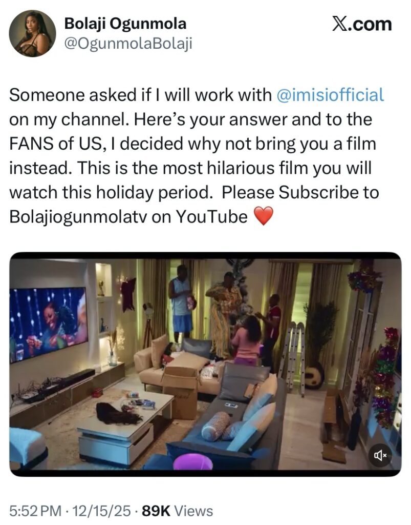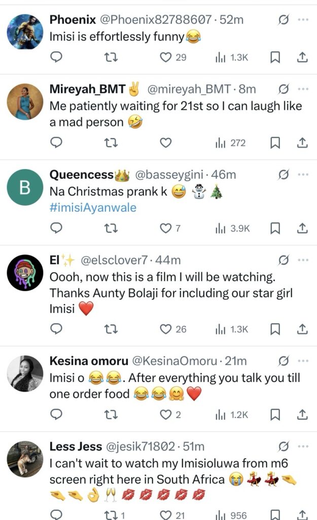 Fans can’t stop talking after actress and filmmaker Bolaji Ogunmola released the trailer for her upcoming movie, with Imisi stealing the spotlight in the preview. Shortly after the trailer dropped, social media was flooded with reactions, with many viewers praising Imisi’s comedic delivery and natural screen presence.