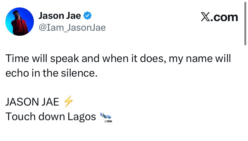 BBNaija star Jason Jae has finally broken his silence after getting dragged into the ongoing drama surrounding Victory’s homecoming incident. While fans debated what role he may have played in the chaotic situation, Jason took to X (formerly Twitter) to drop a bold and poetic response that quickly went viral.