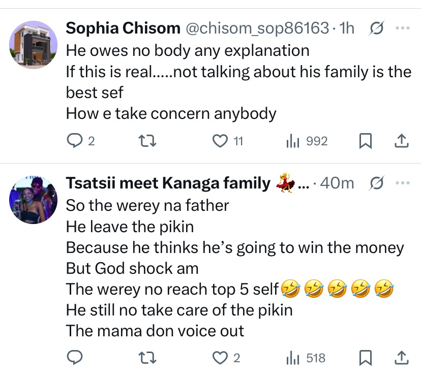Social media is buzzing after alleged leaked chats surfaced online showing a woman claiming to be the mother of BBNaija star Kaybobo’s child. The screenshots, which circulated across Instagram and X, quickly sparked intense reactions from fans and followers of the reality TV personality.