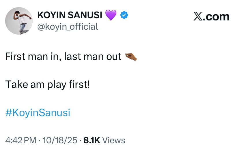 Reacting to the backlash, Koyin took to his social media story with a calm but subtle response.