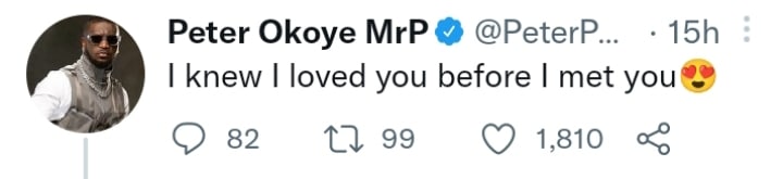 The singer had taken to his Twitter page to make a simple, innocuous tweet which proclaimed his love for someone.
